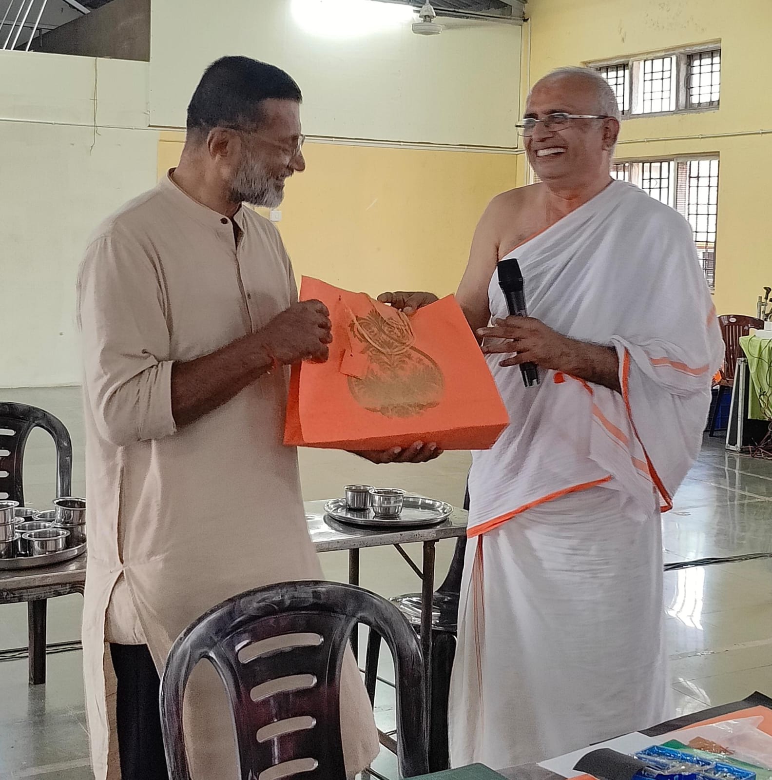 Shrī Kishore Kumbl̃e mām, General Manager, Shrī Chitrāpur Mat͟h, on behalf of the Chāturmāsa Cultural Committee, presented Dr. Gaurīsh Paḍukoṇe mām with a token of appreciation and gratitude.