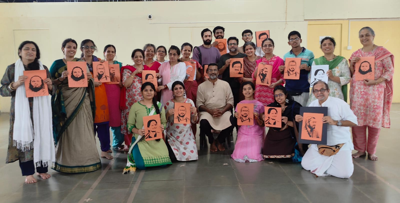 We are grateful to Gaurīsh mām for offering his time, knowledge, and love. When he taught his skill to the enthusiastic participants, we aligned with The Divine Mother’s creative energy. By attempting to learn this art from the generous Gaurīsh mām, the workshop, a meditative process, transformed into upāsanā.
