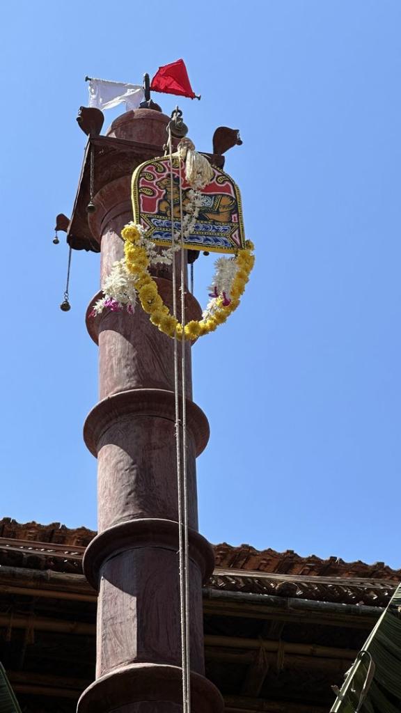 During the Rathotsava, the Dhwaja at the top of the Stambha, with its tinkling bells, beckons the devotees to come forth and celebrate joyously while propitiating the Devatā.