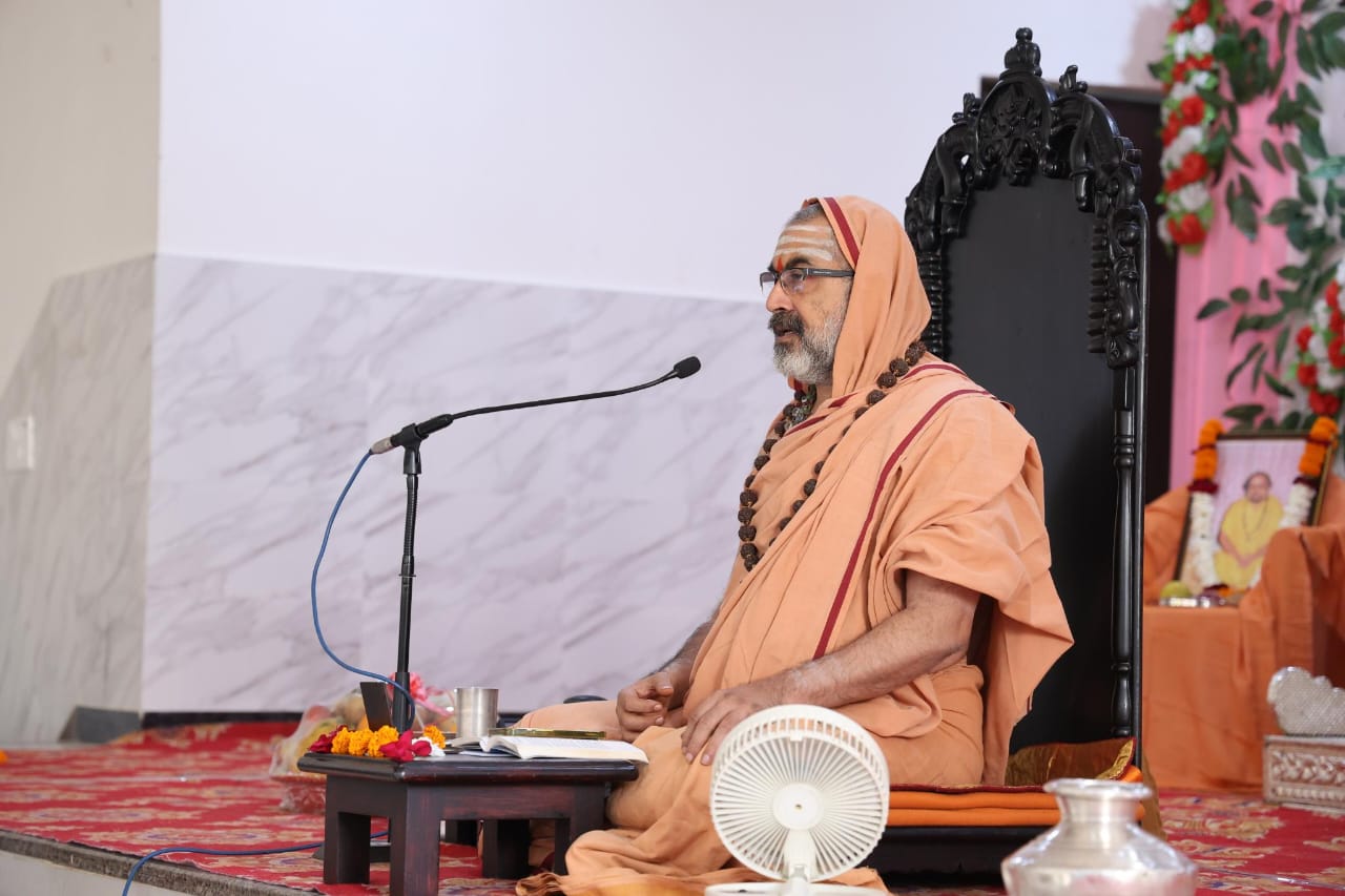 The day began with Mahāpūjā, Shrī Guru Pādukā Pūjana by sādhaka-s and Tīrtha Vitaraṇa by H.H. Swāmījī.