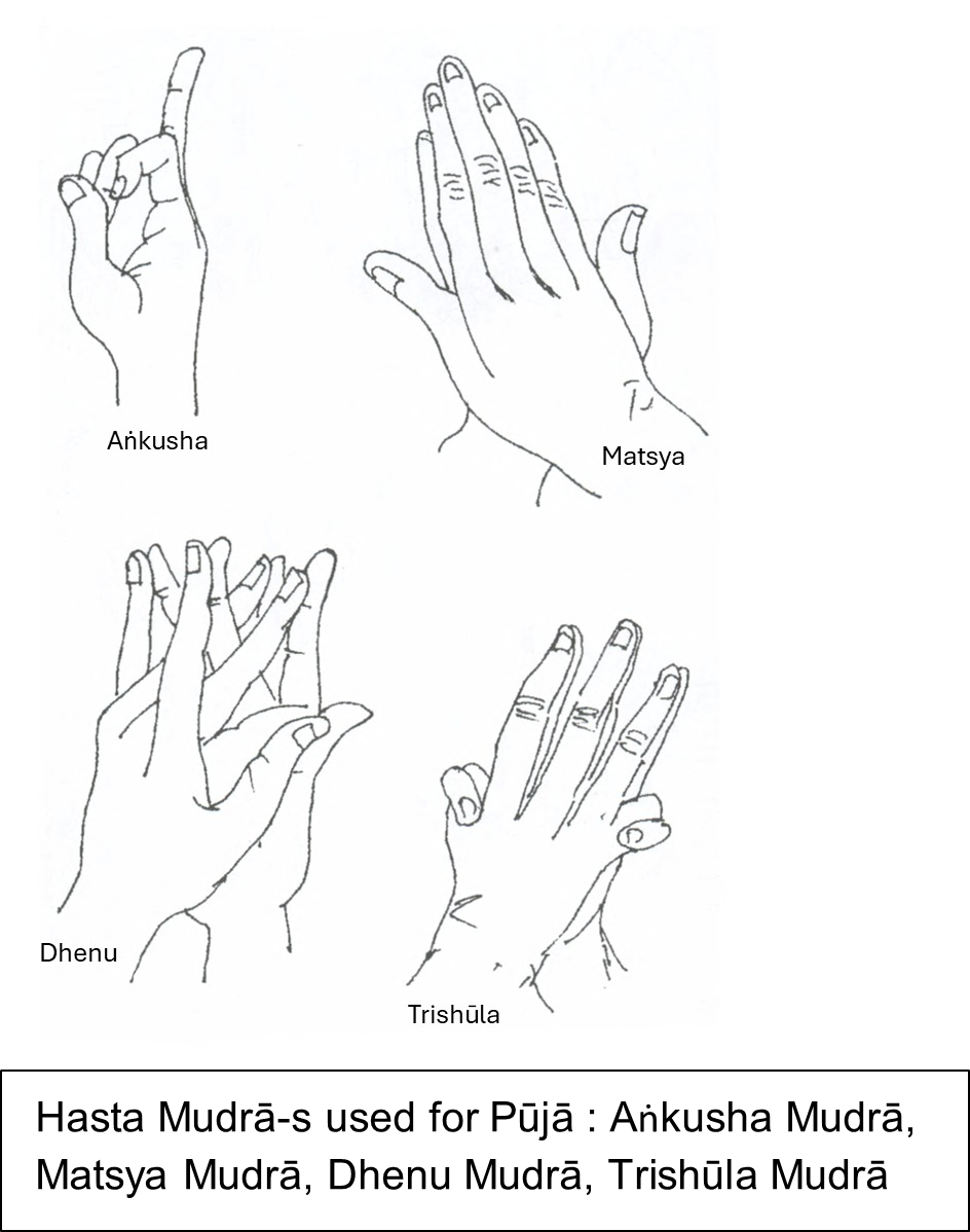 During pūjā-s and yajña-s, coordinated use of mind, speech, and body, with mudrā-s serving as the physical expression of inner devotion, connect the worshipper with the Divine.