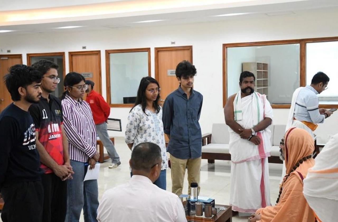 HH Swamiji interacts with students while touring the Campus