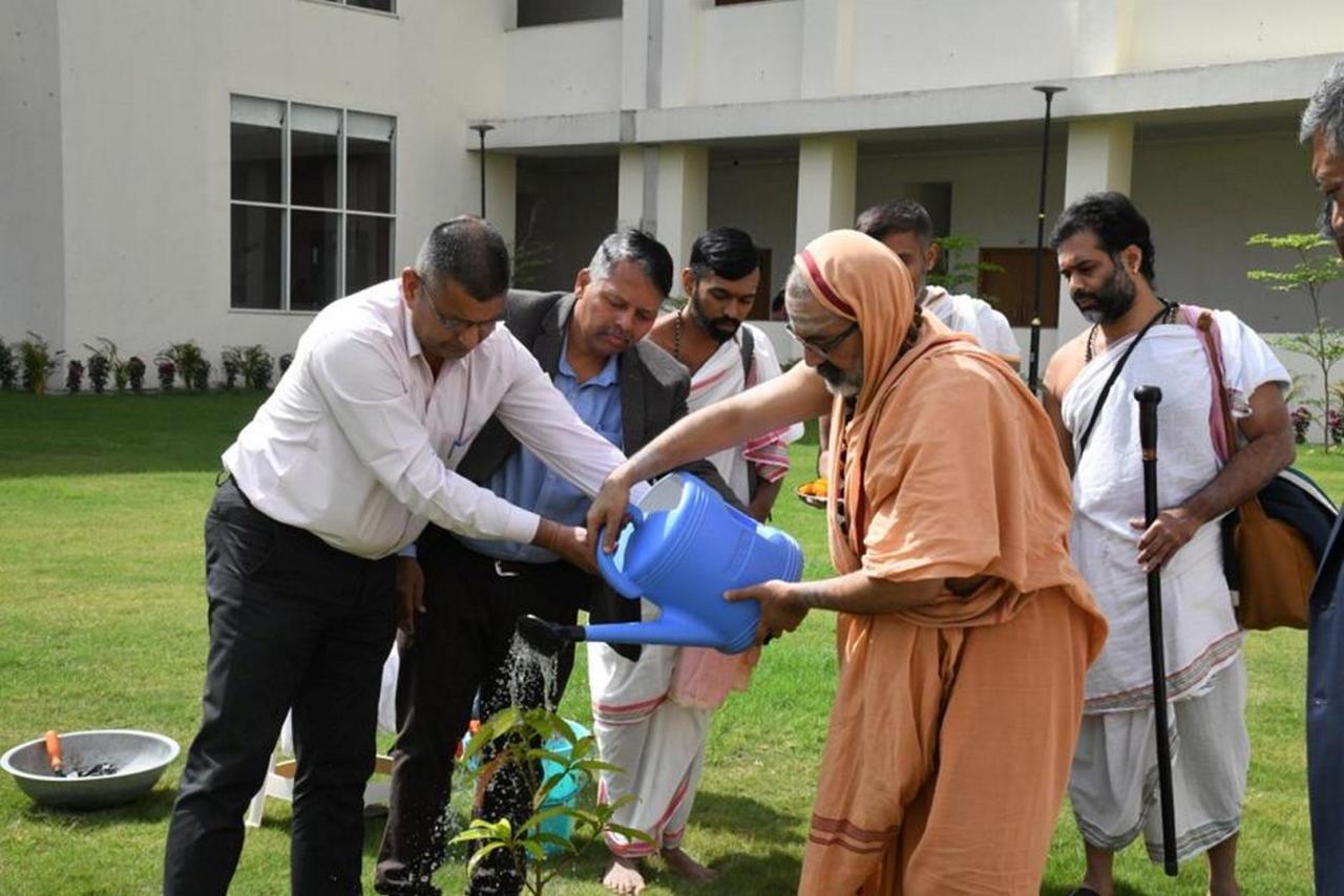 HH Swamiji plants a Rudraksha sapling in the courtyard arena, symbolizing spiritual growth and environmental consciousness