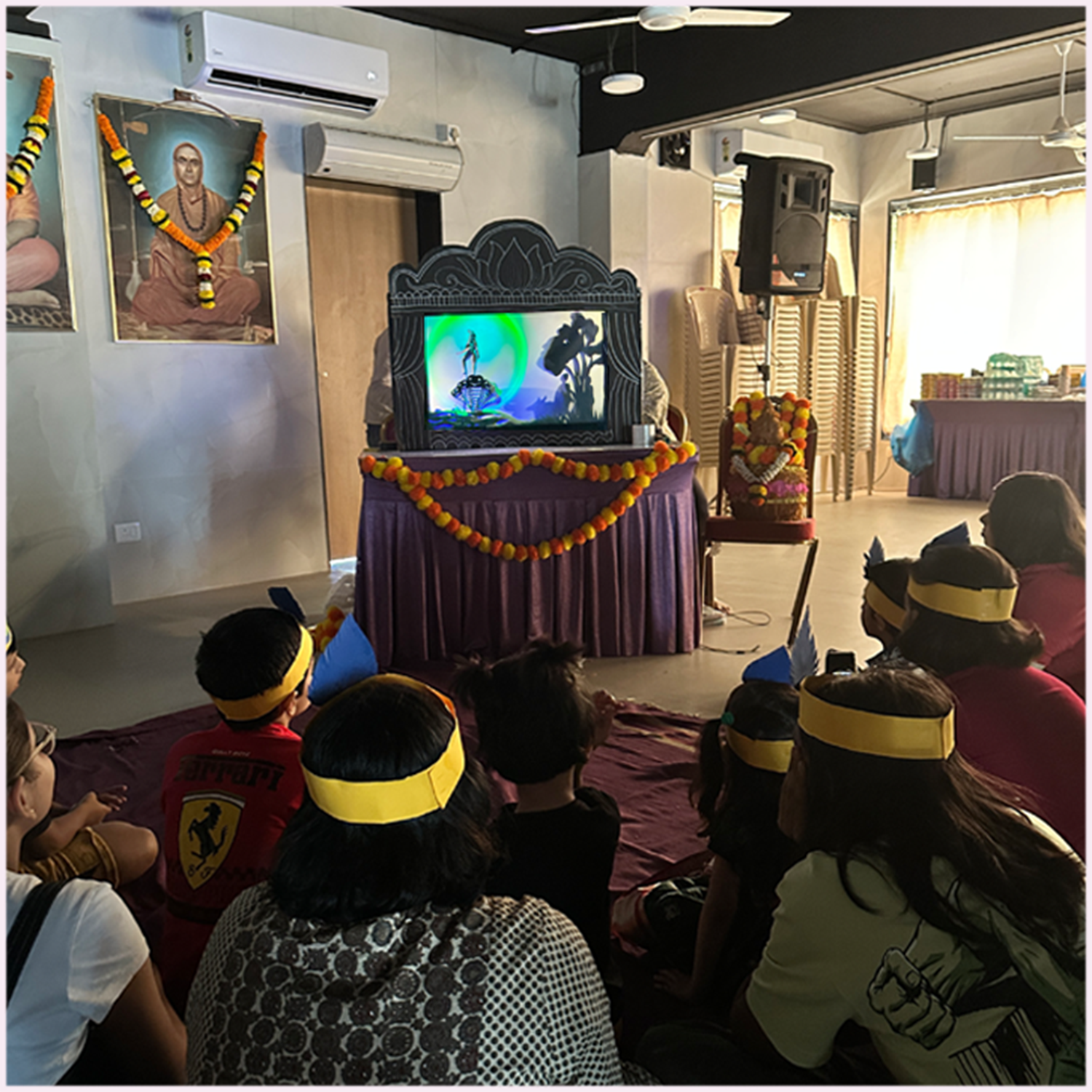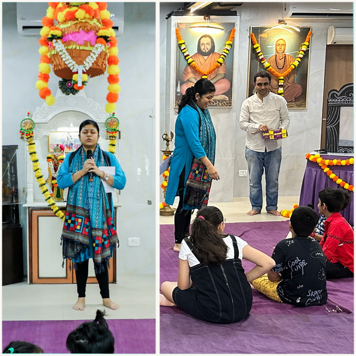 A volunteer meeting was soon called to decide a date for the workshop and plan the activities. The age group was decided as below 13 years. The arrangements were immediately initiated by Bipin Nāḍkarṇī mām, supported by Ᾱditya Maṅkīkar and Chaitanya Mallāpur. The KSA hall was selected as the venue, which perfectly aligned with the event's theme, housing the beautiful vigraha of the Lord Himself. Through the years, the devotionally resonant and famous As͟hṭamī Mhaṇtī-s have been traditionally celebrated at the KSA hall in Tālmakīwāḍī.