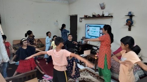 Parents have also shared that Online PV has benefitted not only their children but the whole family, by making them aware of Math activities and bringing them closer to our community. Many grandparents too sit through the classes and enjoy the sessions. Children often say that Online PV classes make them feel fresh and joyful—they eagerly wait for the next class and even remind their parents about it! Their enthusiasm is visible when they spontaneously volunteer to chant stotra-s, raise thoughtful questions during Child -Speak sessions, and showcase their artistic and musical talents in Janmotsava celebrations, or on stage during HH Swamiji’s camps and videos of Kavyakatha Dwitiya.