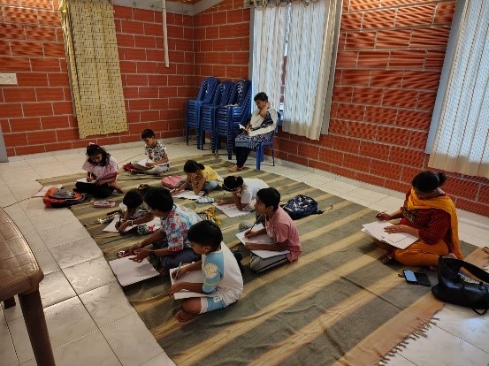 With the introduction of the new curriculum in 2024 under Pujya Swamiji’s Guidance, the Prarthana Varga content became more structured and at the same time interesting and engaging too. An audio-visual presentation has a lasting impact on the tender growing minds. Anulekhana gives the children time to recollect what they have understood from the videos and the write about it in their personal Prarthana journals. Children are given various opportunities – bhajan- singing, stotra- chanting, inculcating healthy habits with physical exercises and a very positive mind with Brahmarpanam.. with the shloka chanted before partaking food, for example.Stage performances are given by confident children as they slowly transform into sensitive and stable - minded adolescents. Quiz time, Kalakriti (different activities) enhance the have-fun as-you- learn approach !