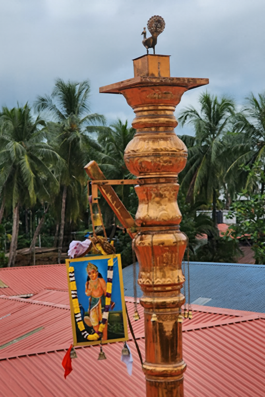 During the Rathotsava, the Dhwaja at the top of the Stambha, with its tinkling bells, beckons the devotees to come forth and celebrate joyously while propitiating the Devatā.