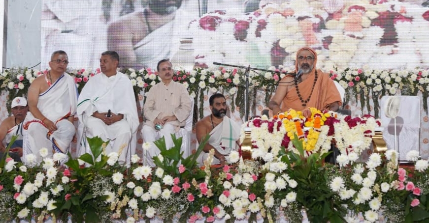 H.H. Shrīmat Sadyojāt Shaṅkarāshram Swamījī blessed the gathering with His Ᾱshīrvachana and quoted the shloka:
