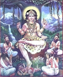Abhaya Mudrā: The raised palm facing outward, this mudrā grants protection to devotees. Shrī Daks͟hiṇāmūrti, Shiva's Naṭarāja form, Devī Bhuvaneshwarī and Deva-s displaying this mudrā inspire devotees to cultivate virtues of courage and fearlessness, especially on the path of dharma and sādhanā.