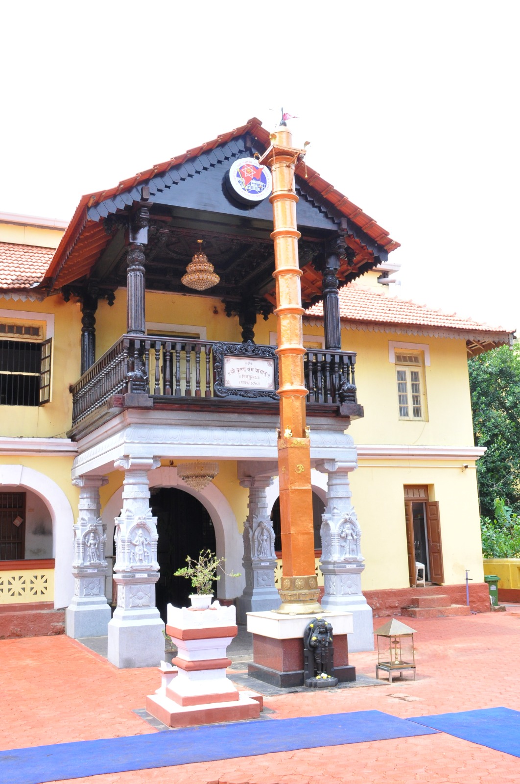 The intricately carved, massive wooden doors lead to the Pavitra environs of the Mat͟h building itself. We first offer our obeisance to the Kīrti Mukha and Shrī Gaṇapati sculpted on top of the Mukhya Dwāra (Main door) respectively praying for protection from all negativity and removal of all obstacles in our sādhanā.